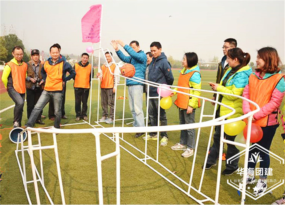 各组队员练习用一只拴着许多绳子的鼓去接弹在空中的排球。分组PK规则为每队学员,在规定的180秒时间内,连续颠球数量最多的一次作为最终比赛成绩。这是一个要求团队高度协作的项目,创造尽可能多的颠球记录。